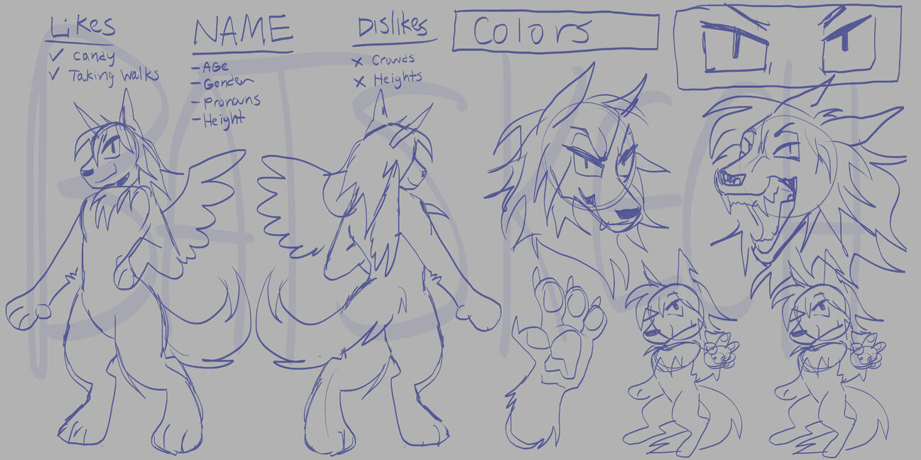 - Front view/Headshot / 1 Chibi / info/Eyes/colors - OR - Only Front and Back/Eyes